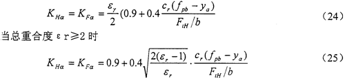 齒間載荷分配系數(shù)是考慮同時(shí)嚙合的各對輪齒間載荷分配不均勻影響的系數(shù)。齒間載荷分配系數(shù)按下式確定。