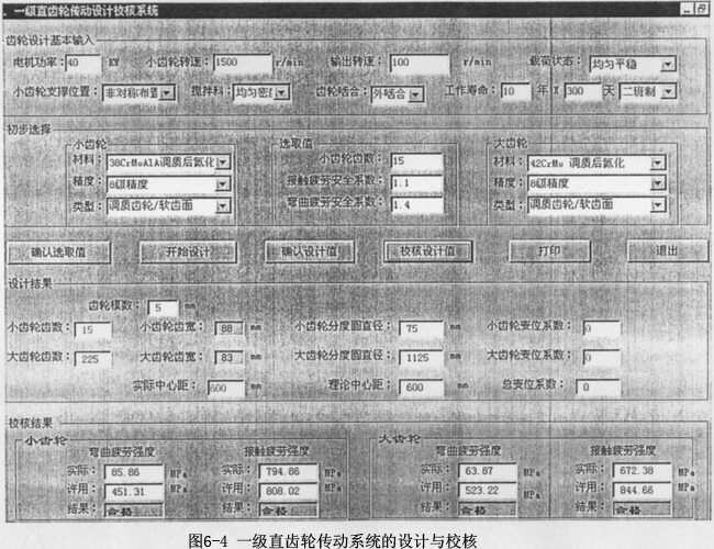 本系統(tǒng)根據企業(yè)的要求,將行業(yè)的普遍需求和企業(yè)的特殊需求結合起來,既具有通用性,又具有專用性。通用性表現(xiàn)為可以對任意類型的圓柱齒輪嚙合對(包括直齒輪、斜齒輪之、行星齒輪的內嚙合和外嚙合等等)進行校核,專用性表現(xiàn)為針對一級、二級直齒輪和斜齒輪和斜齒化嚙合傳動系統(tǒng)的設計與校核。