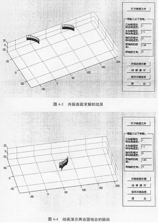 點擊Conjugater1.0界面中的“動畫演示”按鈕,可以直觀地看到兩齒面轉(zhuǎn)動和嚙合的過程。