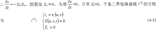 兩偏導數(shù)不能同時為零。因為如果同時為零,說明包絡條件中沒有變數(shù)u、v,這時t只能等于常數(shù),代入第一式,只能得到曲面族中的某一曲面,而不存在包絡線。