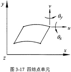 由上述分析可知:均載環(huán)離散成八個對稱的環(huán)弧段,因此均載環(huán)總體剛度的計算歸結(jié)為求解其離散的環(huán)弧段的剛度。本章利用I-DEAS分析軟件計算內(nèi)、外表面各均勻分布八個凸臺的輸入、輸出軸彈性均載環(huán)的離散環(huán)弧段的剛度,從而得到均載環(huán)的總體剛度。對于圖3-15所示的離散環(huán)弧段,內(nèi)凸臺的受力沿+x方向,并且在沿軸向方向上均勻分布,所以只需考慮xy平面內(nèi)的形變分量和位移分量即可,可以認(rèn)為是平面應(yīng)力問題。在單元選擇上,選用“平面應(yīng)力問題”中的四結(jié)點(diǎn)單元,定義單元的四結(jié)點(diǎn)厚度與彈性均載環(huán)的寬度相一致。四結(jié)點(diǎn)單元如圖3-17所示。