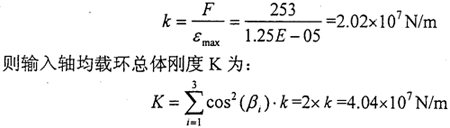 由上述的輸入軸均載環(huán)的實(shí)際結(jié)構(gòu)參數(shù),可以求出輸入軸均載環(huán)環(huán)弧段的剛度為: