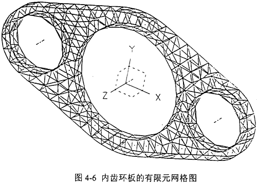 根據(jù)三環(huán)減速機(jī)內(nèi)齒環(huán)板的實(shí)際結(jié)構(gòu),設(shè)置單元類型、大小及材料特性,內(nèi)齒環(huán)板的分析屬于空間問(wèn)題,選取四面體單元進(jìn)行計(jì)算,選取單元長(zhǎng)度為3mm,由Meshing模塊共生成實(shí)體線性的四面體單元11658個(gè),節(jié)點(diǎn)12170個(gè),內(nèi)齒環(huán)板的有限元網(wǎng)格如圖4-6所示。12種載荷工況下各模型的約束處理都是相同的,由此建立了內(nèi)齒環(huán)板在12個(gè)典型嚙合位置時(shí)的有限元分析模型。建立約束集和解集,利用I-DEAS軟件Model Solution模塊對(duì)建立的12個(gè)有限元模型分別求解,可求出12種載荷工況下各模型的位移及應(yīng)力如表4-5所示。12種載荷工況下內(nèi)齒環(huán)板的最大位移如圖4-7所示,12種載荷工況下內(nèi)齒環(huán)板的最大應(yīng)力如圖4-8所示。
