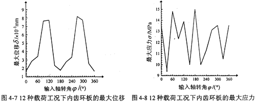 表4-5 內(nèi)齒環(huán)板12種典型工況下的位移及應(yīng)力計(jì)算結(jié)果