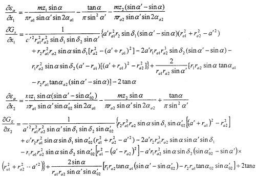 x1、x2——分別為外、內(nèi)齒輪的徑向變位系數(shù)。