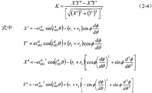 (1)由圖2-6中K-θ曲線可以看出,中心輪每一個(gè)齒在齒根處曲率最大,曲率半徑最小。沿著齒廓上升的過(guò)程中曲率減小到零后,繼續(xù)減小為負(fù)值。到達(dá)齒頂時(shí),曲率最小。
