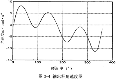 首先由圖3-2可以看到,若機構(gòu)結(jié)構(gòu)參數(shù)設(shè)計恰當(dāng),并且調(diào)整中間滑塊3偏移到合適的位置時,可在一定范圍內(nèi),產(chǎn)生一個反向的速度波適度抵消原速度波動。再由圖3-3可知,在未加入第二自由度時,加速度變化值不大,說明阻力矩和電機主動力矩不會受到大的影響,不致導(dǎo)致原機械系統(tǒng)的各項參數(shù)發(fā)生大的變化。