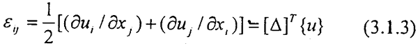 代入式(3.1.3)由此推出應(yīng)變與節(jié)點位移關(guān)系: