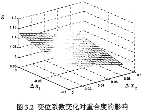 由式3.10、3.11可以看出,當總變位系數(shù)xΣ=x2-x1產生變化時,必然引起起嚙合齒輪齒頂圓直徑的變化。按X1、X2變化最小原則,有三種可能性,即X1不變,X2變化0~0.18;或X1變化0~0.18,X2不變;或X1變小,X2變大,變化范圍0~0.09。假定齒輪嚙合角不變,按本文實驗樣機參數(shù),當齒輪變位系數(shù)發(fā)生變化時,其變化量對重合度的影響狀況見圖3.2所示。從圖3.2所示可以看出,隨外齒輪變位變小時,齒輪嚙合重合度減小,隨內齒輪變位變小時,齒輪嚙合重合度增大,從圖中的變化趨勢為看,外齒輪變位系數(shù)的變化對重合度的影響程度與內齒輪變位系數(shù)的變化對重合度的影響程度大約是相同的,只是趨向是反向的。