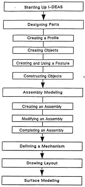 在SUN工作站上使用I—DEAS軟件的Solid—Modeling模塊對(duì)SHQ40箱體進(jìn)行實(shí)體建模,其主要操作規(guī)程如圖3-4所示。