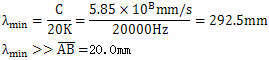 對(duì)SHQ40箱體,材料為鑄鐵HT20-40(見(jiàn)第六章),其聲波速為=C=5.85×108mm/s,而噪聲可聽(tīng)見(jiàn)的頻率范圍為d=16~20KHz,則:
