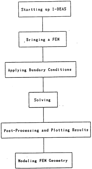 在SUN工作站上使用I—DEAS軟件中的有限元模塊(FE—Modeling—and—Analysis)對(duì)SHQ40箱體進(jìn)行有限元分網(wǎng),其具體操作規(guī)程如圖3-7示。