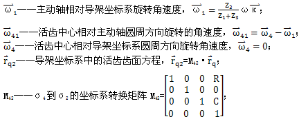 若采用雙圓弧滾道,則該雙圓弧正弦滾道的齒廓方程為(主動軸為例):左齒面齒廓方程:
