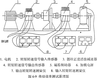 機械傳動件的性能是工程界十分重視的一個問題,它直接影響產(chǎn)品成本及能源消耗,每個設計師都希望自己設計的機器是一臺高效率,噪聲低,振動小,溫升低的機械。但是,由于機器結構等因素的影響,實際機器很難達到理想的計算效率及其它設計參數(shù),實際機器效率受加工精度和裝配精度及使用條件等因素影響將低于計算效率,這就需要進行試驗研究,以測量實際機器的效率值和與其相關的參數(shù),給傳動裝置的選擇及改進設計提供數(shù)據(jù)。為此,本文對圓柱正弦活齒減速器樣機進行了傳動比及傳動效率試驗研究,試驗裝置的工乍原理如圖6-9所示。試驗臺的實物照片如圖6-10所示。