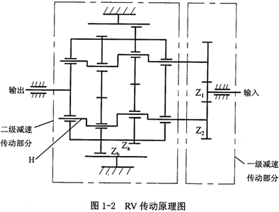 在K-H-V型行星齒輪傳動(dòng)基礎(chǔ)上,發(fā)展起來的RV傳動(dòng)和雙曲柄式少齒差行星傳動(dòng)機(jī)構(gòu)在工程上得到了較好地應(yīng)用。圖1-2所示為RV傳動(dòng)原理圖。