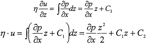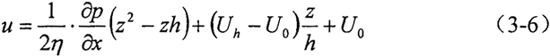 用邊界條件確定C1和C2。由于界面上流體速度等于界面速度,如果兩固體表面的速度為U0和Uh,即當(dāng)z=0時(shí),u=U0;當(dāng)z=h,u=Uh。求得