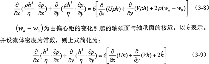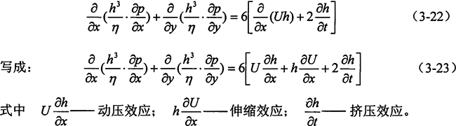 必須強(qiáng)調(diào)指出:上式的Reynolds方程是根據(jù)一系列假設(shè)推導(dǎo)出來(lái)的,適用于一般工況條件的潤(rùn)滑計(jì)算。在特殊的工況條件下,當(dāng)某些假設(shè)不能成立時(shí),必須針對(duì)具體情況推導(dǎo)相應(yīng)的Reynolds方程形式。