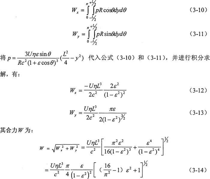 式中 W——總載荷;c——半徑間隙;U——軸表面圓周速度;ε——偏心率;η——粘度;L——軸承的總軸向長(zhǎng)度。