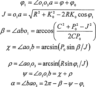 (2)機(jī)架位置角φ0,當(dāng)φ=0時(shí),曲柄與機(jī)架K0所夾的角: