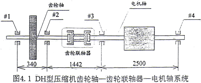 圖4.1是某國產DH型透平壓縮機組的核心部分,系統(tǒng)由齒輪軸、電機軸、齒輪聯(lián)軸器和滑動軸承組成。