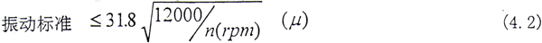 根據(jù)文獻(xiàn)[9],機(jī)組振動都是以軸承的振動為標(biāo)準(zhǔn),設(shè)備制造驗(yàn)收標(biāo)準(zhǔn)以美國API、日立、GB、FB(風(fēng)機(jī)專業(yè)標(biāo)準(zhǔn))順序執(zhí)行。其中API617—1979中2.8.25節(jié)關(guān)于轉(zhuǎn)軸(靠近軸承的任何截面)振動標(biāo)準(zhǔn)