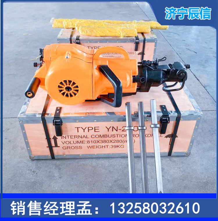 1、YN27手持式內(nèi)燃鑿巖機(jī)是一種由小型汽油發(fā)動(dòng)機(jī)、壓氣機(jī)、鑿巖機(jī)三位一體組合而成的手持式鑿巖工具;