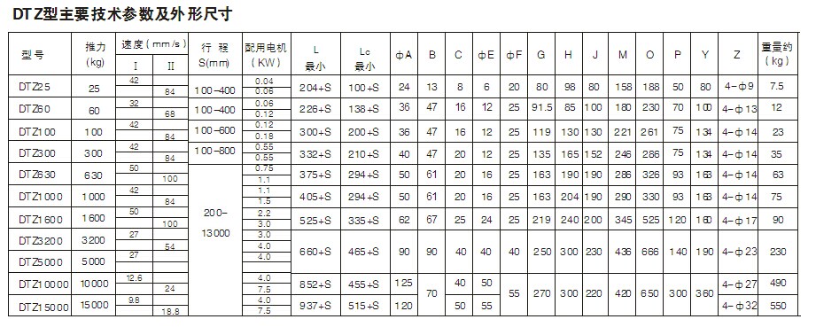 DTZ電動(dòng)推桿選型 |