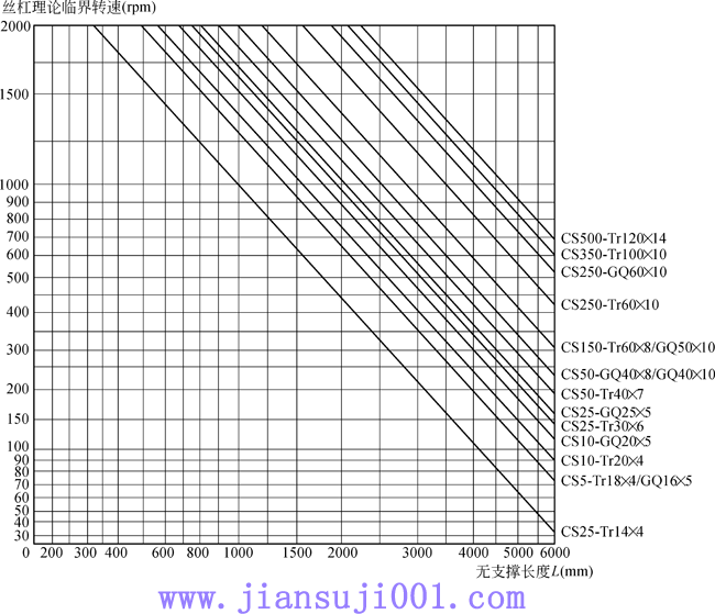 B 型結(jié)構升降機的絲杠轉(zhuǎn)速與長度關系