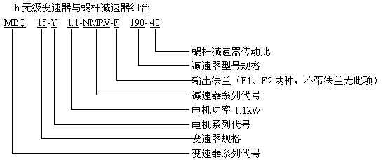 蝸桿減速器與無級變速器組合NMRV系列型號標記
