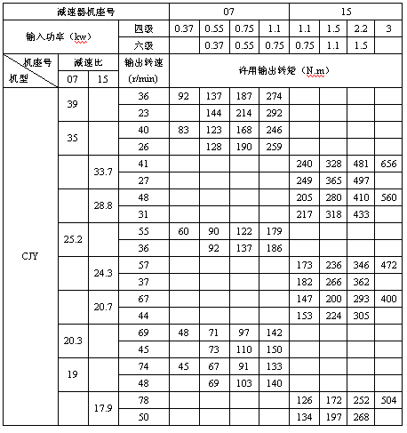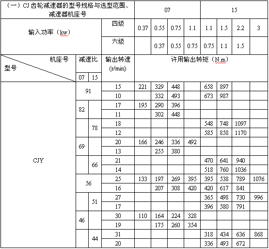 CJ型齒輪三相異步減速機技術(shù)參數(shù)及選型參照表