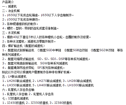 產(chǎn)品用于冶金、礦山、水泥、石油、化工、起重、運輸、紡織、印染、郵電通迅、造紙等行業(yè)。產(chǎn)品為鞍鋼、本鋼、首鋼、五礦營口中板廠、通遼電廠、撫順電廠等廠家配套選用。