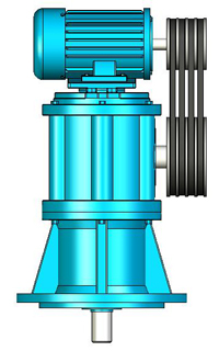 本系列減速機(jī)是采用尼曼型圓柱蝸桿嚙合付傳動(dòng),蝸桿可磨削,提高加工精度,凸凹齒廓嚙合,使圓周速度方向的夾角增大,有利于產(chǎn)生最佳潤(rùn)滑油膜,改善嚙合狀況,提高了齒面抗疲勞強(qiáng)度,延長(zhǎng)使用壽命;凸凹齒嚙合曲率較。ㄇ拾霃捷^大),降低了接觸能力,提高承載能力;輸出軸軸承間距較大,有利于提高輸出剛度,增加傳動(dòng)穩(wěn)定性,無需另置支承軸承,簡(jiǎn)化了結(jié)構(gòu),縮小體積,提高長(zhǎng)軸攪拌能力;Ⅲ型輸出軸采用帶有內(nèi)錐面的空心結(jié)構(gòu),攪拌軸穿過空腔以錐面定位,軸頭用螺母鎖定即可,裝配十分方便快捷,便于維修;電機(jī)經(jīng)帶輪減速后再連于減速機(jī),既增加了速比范圍,又起緩沖作用。