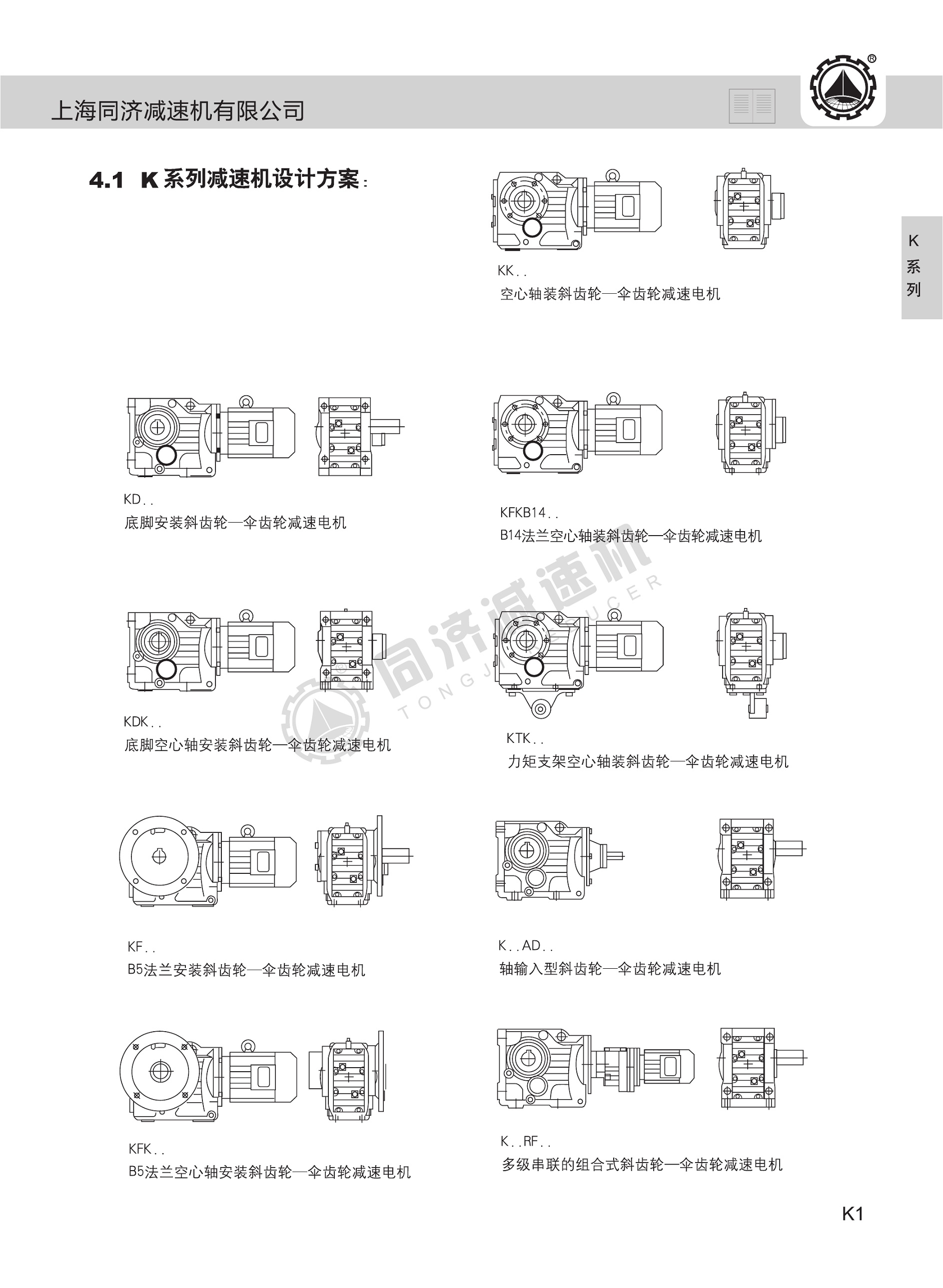 ![]() K系列減速電機其齒輪的齒線為圈弧形,重疊系數(shù)大、承載能力高、磨損均勻、噪聲小、 傳動平穩(wěn),最適合用于傳遞兩相交軸之間的回轉(zhuǎn)運動。該機廣泛應(yīng)用于各行業(yè)機械高速 重載中,并能與各種減、變速機組合,滿足不同條件要求的場所。 功率: 0.12~200kW 轉(zhuǎn)矩: 150~50000Nm 減速比: 5.93~17312 輸出軸型式: 實心軸、空心軸(平鍵、花鍵、鎖緊盤) 安裝方式: 地腳式、法蘭、扭力臂