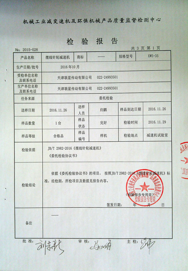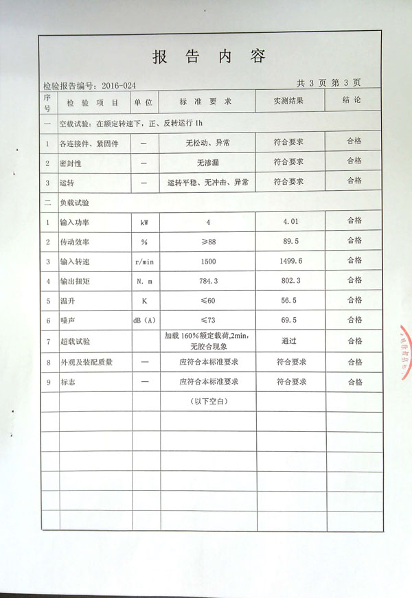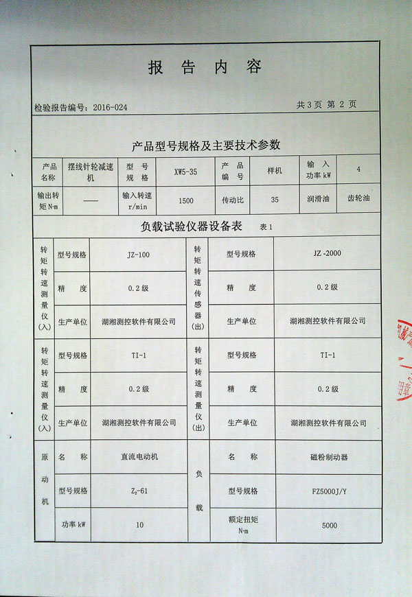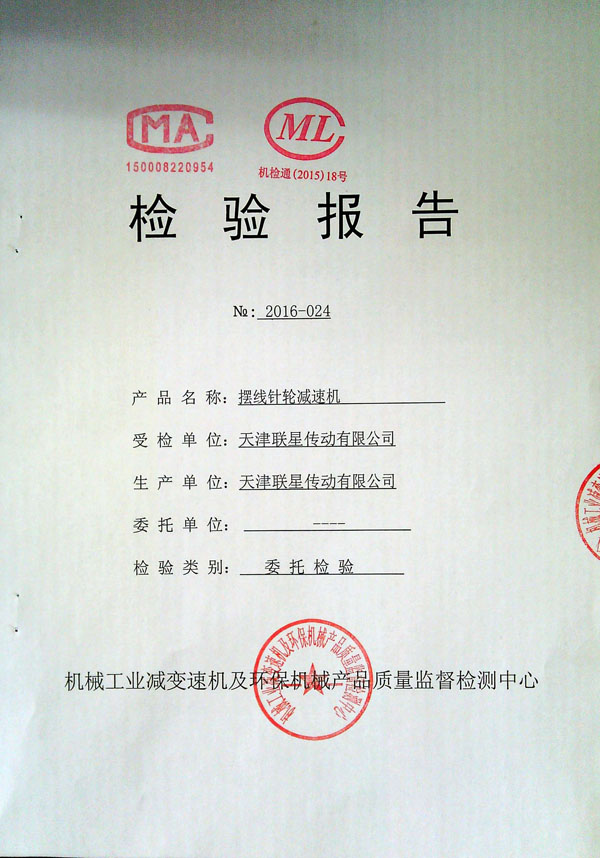 >>擺線針輪減速機檢測報告