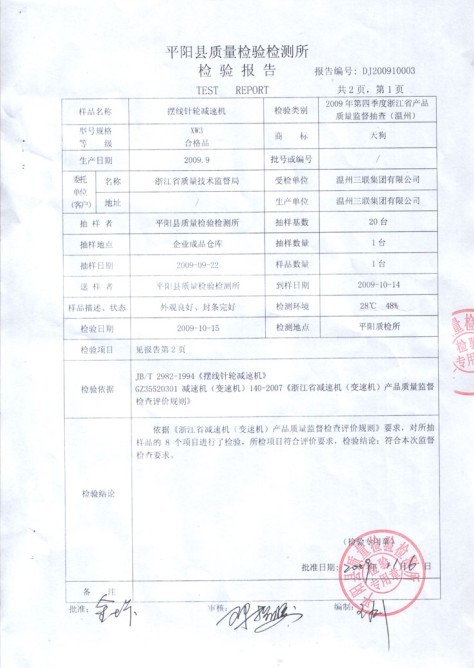 >>溫州聯(lián)博機械有限公司擺線輪檢測報告1檢測報告