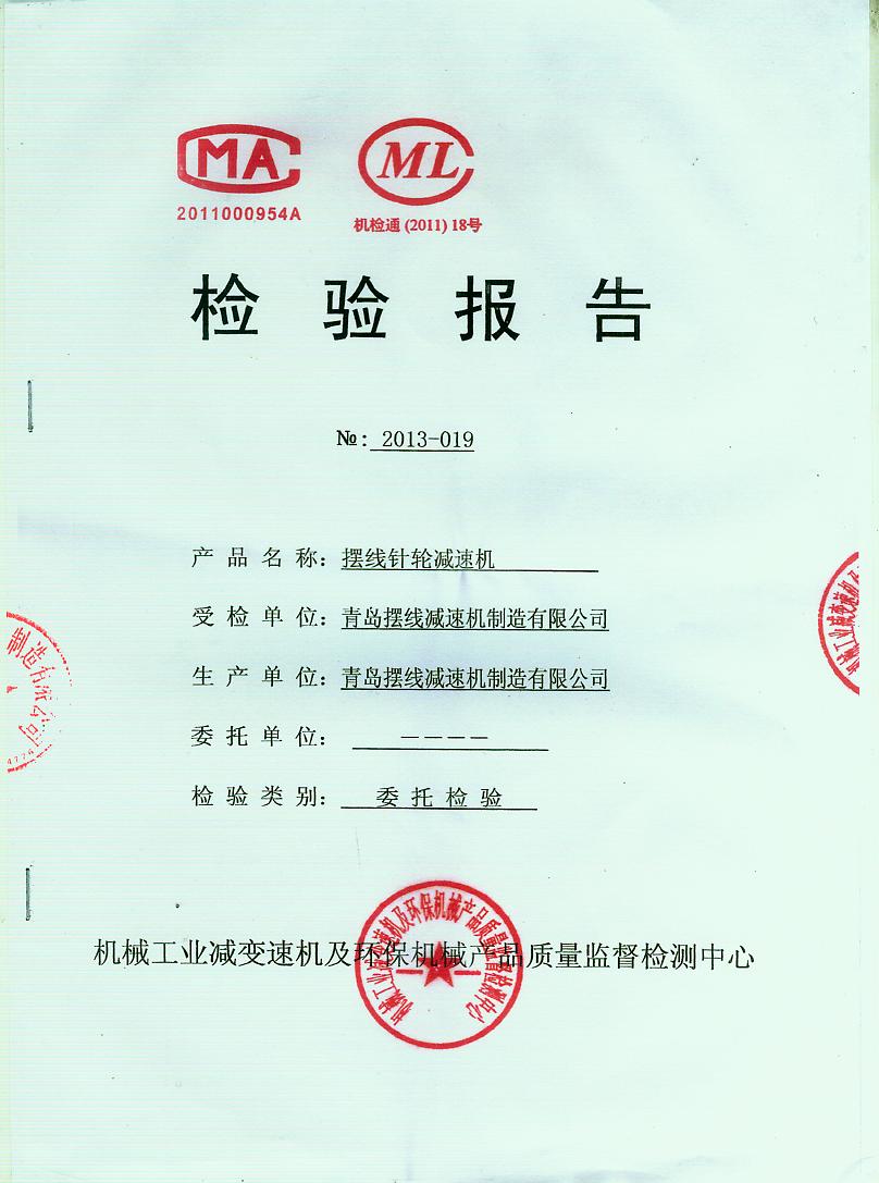 青島擺線減速機(jī)制造有限公司產(chǎn)品質(zhì)量檢測(cè)報(bào)告